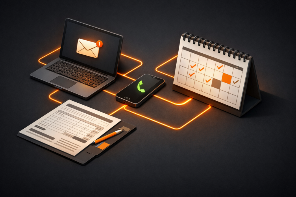 Mit einem durchdachten System ändert sich das Grundprinzip: Sichtbarkeit, Anfragen und Abschlüsse sind keine getrennten Baustellen mehr, sondern eine Kette. Jeder Schritt baut auf dem nächsten auf – und du behältst den Überblick darüber, was funktioniert und was nicht.